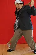 | Skrzyżowany krok do przodu | Krok do przodu, w którym jedna noga krzyżuje się w czasie ruchu z przodu drugiej nogi. Ta sekwencja jest częścią ocha. | ||||
