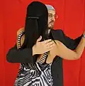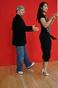 | Pareja tomada | Objęcie podczas nauki tanga | Partner jest w pozycji "czajniczka od herbaty" (prawa ręka z tyłu, lewa ręka jak dziubek od czajniczka). | |