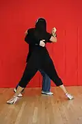 | Projekcja | Jedna z nóg jest na osi natomiast druga jest wysunięta, jej duży palec pozostaje blisko przy podłodze. Ten element jest podstawą wielu kroków. | |||