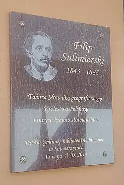 - Filip Sulimierski jest patronem Gminnej Biblioteki Publicznej w Sulmierzycach[6]
