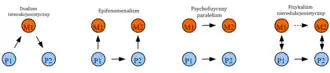 - neuropsychologia opisuje zależności pomiędzy funkcjonowaniem układu nerwowego – w tym również zaburzeniami – a szeroko rozumianymi zjawiskami psychicznymi (emocje, pamięć, osobowość)[57][58];