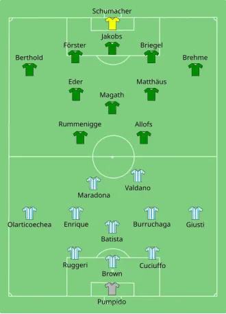 | 1:1[5] | Diego Maradona | 2:1[6] | Rudi Völler, Klaus Allofs | |||||||||||||||||||||||||||||||||||||||||||||||||||||||||||||||||||||||||||||||||||||||||||||