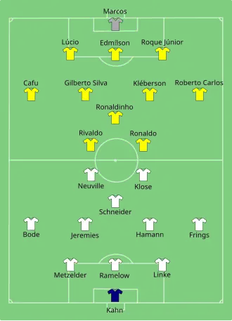 - 1 2 3 Niemcy - Brazylia, 30 cze 2002 - Mistrzostwa Świata 2002, [w:] baza Transfermarkt (protokoły meczowe) [dostęp 2020-09-05].