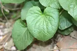 - Liście odziomkowe w liczbie od jednego do ośmiu, podnoszą się lub są wyprostowane, ich blaszka liściowa ma kształt od owalnego lub szeroko owalnego do nerkowatego, mierzy 2–5 cm długości oraz 2–10 cm szerokości, jest karbowana lub piłkowana na brzegu, ma sercowatą nasadę i wierzchołek od ostrego do tępego lub zaokrąglonego, jej powierzchnia jest zielona, zazwyczaj owłosiona (sporadycznie naga). Ogonek liściowy jest owłosiony lub nagi i osiąga 2–25 cm długości. Przylistki są od równowąsko lancetowatych do szeroko lancetowatych, całobrzegie, o ostrym wierzchołku, czasami dystalnie (oddalone od środka) gruczołowate[5].