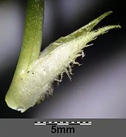 - Torebki mierzące 3-4 mm długości, o kulistym lub jajowatym kształcie, owłosione, osadzone na prostej, odgiętej w dół szypułce[6][7].