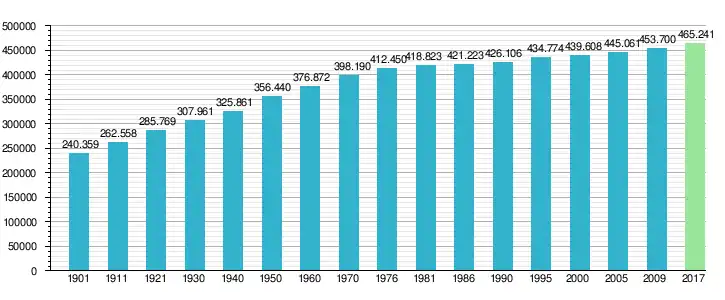 - Wykres liczby ludności Fionii na przestrzeni ostatniego stulecia