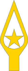 1951–1991 | Czerwony płat tkaniny, u góry przy drzewcu – złoty sierp i młot oraz czerwona gwiazda, u dołu – poziomy zielony pas, przy drzewcu – pionowy pas ornamentu | |