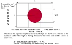 Proporcja wysokości flagi do jej szerokości wynosi 2:3. Średnica tarczy słonecznej, umieszczonej dokładnie w centrum białego pola, wynosi 3/5 wysokości flagi. Słoneczna symbolika flagi (hi-no-maru) jest wynikiem inspiracji wschodem słońca nad oceanem. Japonia leży bowiem na zachodnim krańcu Oceanu Spokojnego[7].