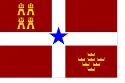 Flaga Murcji, autonomicznego regionu Hiszpanii, ma kształt prostokątu o proporcjach 2:3. Na purpurowym tle w lewym górnym rogu znajdują się cztery złote zamki, a w prawym dolnym rogu siedem złotych koron.