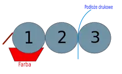 na czerwono: kałamarz farbowy (wanna farbowa) oraz rakiel