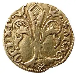 Moneta z kruszcu szlachetnego wprowadzona w 1346 przez Piotra IV na wzór oryginalnej monety florenckiej. Na stronie licowej nosiła przedstawienie św. Jana Chrzciciela, a na odwrocie – stylizowanego kwiatu lilii, będąc w istocie wiernym naśladownictwem florena, ale z inskrypcją ARAGO REX. Bita z 16-karatowego złota, średnią wagą 3,42 g prawie odpowiadała pierwowzorowi (3,35 g). Miała pełnić rolę wartościowej monety kruszcowej wspólnej dla wszystkich ziem korony aragońskiej. W tej zasadniczej postaci (z nieznacznymi modyfikacjami) emitowano ją za Jana I i następców, aż do panowania Ferdynanda II Katolickiego, choć wymieniana jest jeszcze w dokumentach XVIII-wiecznych.