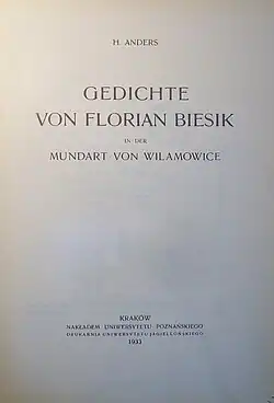 - Heinrich Anders: Gedichte von Florian Biesik in der Mundart von Wilamowice. Kraków: Nakładem Uniwersytetu Poznańskiego Drukarnia Uniwersytetu Jagiellońskiego, 1933. (niem.).