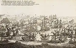 ![]() Widok wejścia do Grand Harbour, z różnymi okrętami Zakonu w tle | |