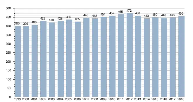 Liczba mieszkańców gminy Fontanals de Cerdanya w latach 1999–2018