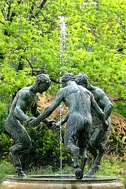Fontanna przedstawia trzy trzymające się za ręce tańczące fauny i została odlana z żeliwa w Hucie Gliwice w 1928 roku. Fontanna została umieszczona na cylindrycznym cokole z ornamentem z motywem baranich głów i festonów.