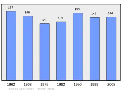 Według danych na rok 1990 gminę zamieszkiwały 153 osoby, a gęstość zaludnienia wynosiła 29 osób/km² (wśród 2335 gmin Lotaryngii Forcelles-Saint-Gorgon plasuje się na 892. miejscu pod względem liczby ludności, natomiast pod względem powierzchni na miejscu 984.).