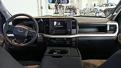 Masywna, rozbudowana deska rozdzielcza płynnie połączona została z szerokim tunelem, współdzieląc te elementy z pokrewnym F-Series. Szeroka konsola centralana została zdominowana przez 14-calowy ekran dotykowy systemu mulmedialnego oferujący łączność z zewnętrznymi inferfejsami i internetem[10].