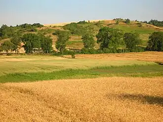 - wysoczyzny morenowej na górnym tarasie (ok. 90–95 m n.p.m.)