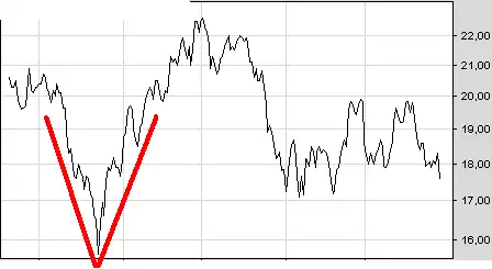 Polega na szybkim spadku ceny do osiągnięcia wartości krytycznej, a następnie zwyżce do początkowego poziomu.