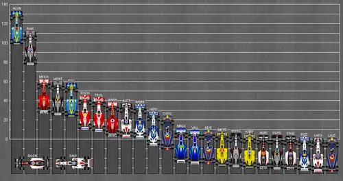 | 3 | Ferrari | NU | 7 | NU | 2 | NU | 7 | 5 | 2 | 1 | 3 | 6 | 5 | 2 | NU | 10 | NU | 4 | 7 | NU | 62 | |