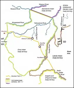 Znaczny oddział Szejenów bezskutecznie atakował grupę 6 cywilnych kosiarzy i chroniących ich 20 żołnierzy podczas tzw. boju na łące w sierpniu 1867. Armia ostatecznie opuściła umocnienia Fortu C.F. Smith, wypełniając warunki traktatu pokojowego, podpisanego w Forcie Laramie w roku 1868.