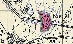 - ↑ Twierdza Warszawa, stan z 1909. Mapa 1:35000. Oficyna Wydawnicza Rewasz, 2011. ISBN 978-83-62460-19-9.