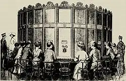 Od lat sześćdziesiątych XIX wieku stereoskopia zyskała ogromną popularność. Wyprodukowano setki tysięcy stereoskopów typu Holmesa i miliony stereogramów w znormalizowanym formacie 3,5 × 7 cali (ok. 9 × 18 cm). Przyczyniło się to do budowy urządzeń, pozwalających na publiczne demonstrowanie trójwymiarowych obrazów. W 1866 roku Alois Polanecky (1826–1911) zbudował urządzenie złożone z 25 stereoskopów wbudowanych w wieloboczną obudowę, zwane „Salonem Stereoskopowym”, z którym występował na jarmarkach[1]. Przy tworzeniu swojego urządzeniu korzystał z pomocy francuskiego fotografa i optyka Claude-Marie Ferriera.