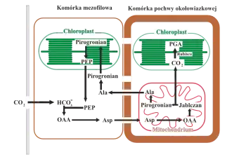- ↑ Hatch M.D., Kagawa T.. . Enzymes and functional capacities of mesophyll chloroplasts from plant with C4-pathway photosynthesis. „Arch. Biochem. Biophys.”. 159, s. 842-853, 1973.