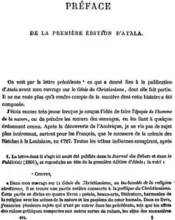 - ↑ Po opublikowaniu Geniuszu chrześcijaństwa przeciwnicy ideowi pisarza podawali w wątpliwość jego wyznanie zarzucając mu, że ogłosił je w chwili gdy Napoleon oficjalnie uznawał religię, zawierając konkordat z Rzymem. W obronie Chateaubrianda stanął wówczas Saint-Beuve, publikując odnaleziony w papierach Fontanesa prywatny list Chateaubrianda, pisany do przyjaciela, krótko po nawróceniu. Ton jego jest osobliwy – konkludował Saint-Beuve – styl przesadny, piszący musiał pozostawać jeszcze pod wpływem uniesienia, ale niepodobna ani przez chwilę wątpić w szczerość jego uczuć.