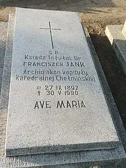 Franciszek Jank pochowany został na cmentarzu parafialnym w Pelplinie.