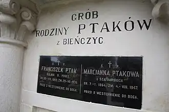 - ↑ Zgon b. pos. Franciszka Ptaka. „Ilustrowany Kurier Codzienny”. 212, s. 10, 1 sierpnia 1936.