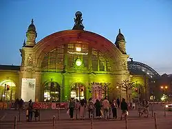 - Historyczne zdjęcie portalu dworca. altfrankfurt.com. [zarchiwizowane z tego adresu (2016-03-04)]. (niem.)