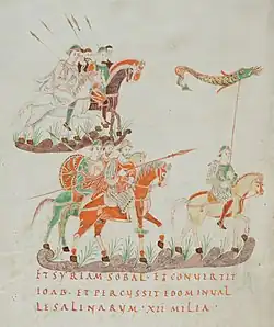 Najbardziej znany wizerunek frankijskich jeźdźców pancernych z epoki (IX wiek), pochodzi ze Złotego Psałterza z Sankt Gallen: jeźdźcom pancernym towarzyszy z tyłu lekka kawaleria (zbrojna we włócznie, miecze i hełmy), a na ich czele jedzie chorąży z proporcem w kształcie smoka, typowym znakiem polowym Franków.