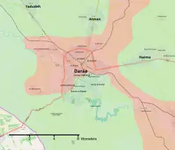 - ↑ Leith Aboufadel, No sleep for rebels in Daraa tonight as Syrian troops launch big assault [online], Al-Masdar News, 20 czerwca 2018 [dostęp 2020-02-09] [zarchiwizowane z adresu 2019-05-01] (ang.).