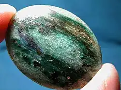 Występuje w skupieniach zbitych i masywnych. Zawiera do 6% Cr2O3. Jest giętki i sprężysty.