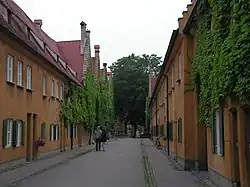 Dzielnica zabudowana jest 52 domami mieszkalnymi w stylu niemieckiego renesansu i otoczona murami z bramami zamykanymi dla postronnych w godz. 22-6. Domy są dwupiętrowe. Na każdym piętrze mieszka jedna rodzina. Mieszkania mają osobne wejścia, składają się z trzech pokoi, kuchni i małego ogrodu lub poddasza. Całe mieszkanie ma około 60 m² powierzchni.