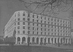 Znany pod nazwą dom Bez Kantów, która wynika z zaokrąglenia narożników gmachu. Wybudowany w latach 1933–1935 według projektu Czesława Przybylskiego i wyliczeń konstrukcyjnych Stefana Bryły. Architektonicznie dostosowany do wyglądu sąsiedniego hotelu Europejskiego budynek jest jednym z czołowych przykładów warszawskiej szkoły architektonicznej oraz przykładem zmodernizowanego klasycyzmu.