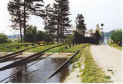 - pochylnie na Kanale Elbląskim (Oberländischer Kanal) - pięć pochylni, na których odbywa się przeciąganie statków na platformach, działające na zasadzie funikularu z liną w obwodzie zamkniętym - rozwiązanie to umożliwia wyciągnięcie platformy z niecki kanału na górnym poziomie,