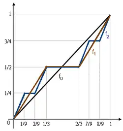 Poniżej definiujemy ciąg funkcji na przedziale jednostkowym, zbieżny do funkcji Cantora.