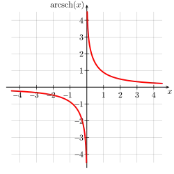 - ↑ Eric W. Weisstein, Inverse Hyperbolic Cosecant, [w:] MathWorld, Wolfram Research (ang.). [dostęp 2024-04-14].