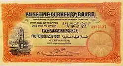 500 milów, 1 funt, 5, 10, 50, 100 funtów (Mandat Palestyny) |