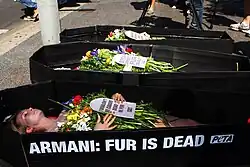 - ↑ PSAs by Campaign: Skins. peta.org. [dostęp 2021-01-10]. [zarchiwizowane z tego adresu (2013-10-24)]. (ang.).