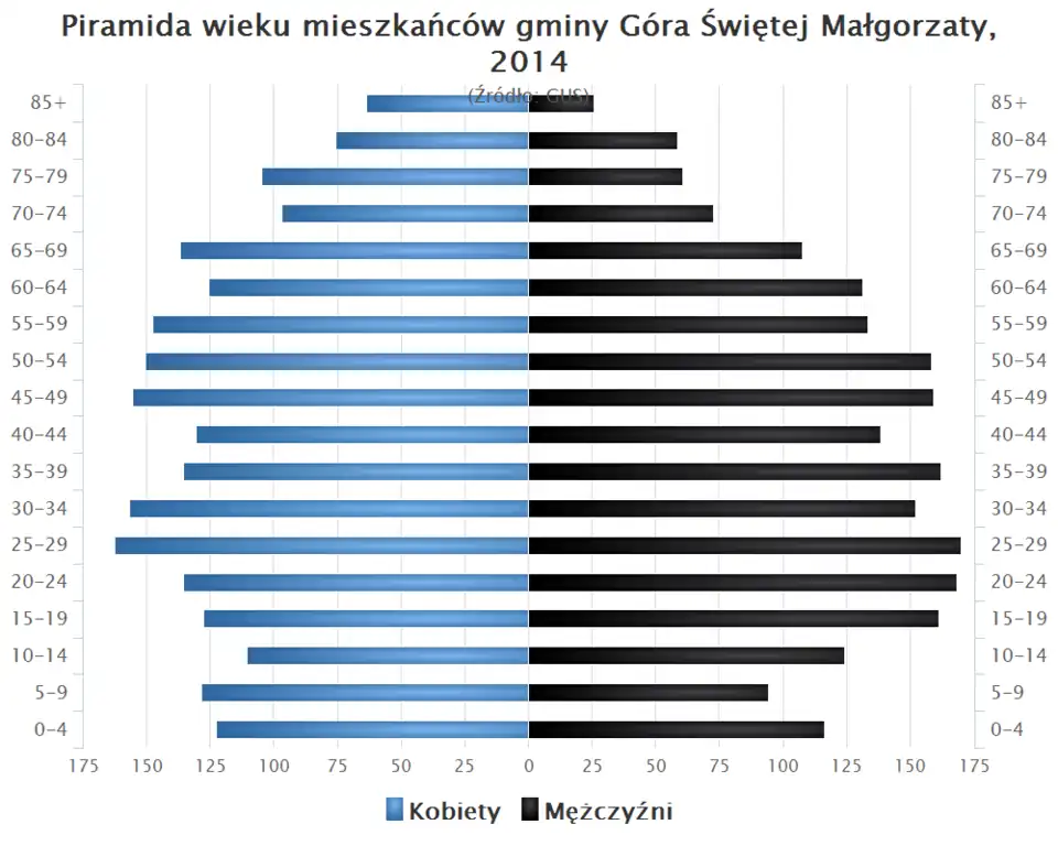 - Piramida wieku mieszkańców gminy Góra Świętej Małgorzaty w 2014 roku[1].