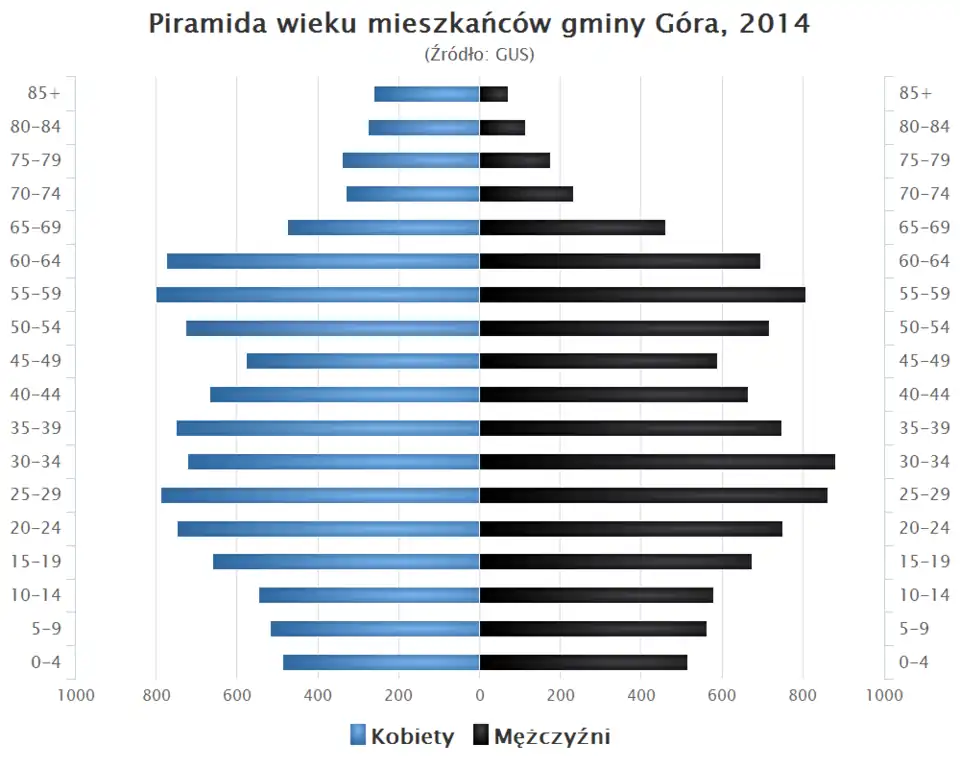 - Piramida wieku mieszkańców gminy Góra w 2014 roku[5].