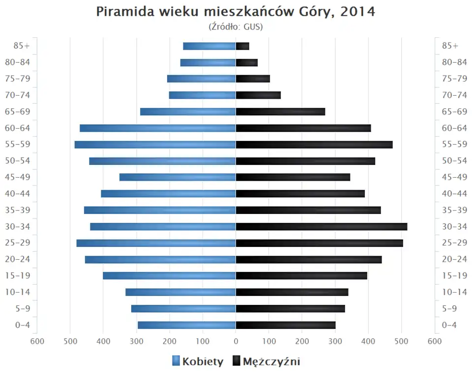 Piramida wieku mieszkańców Góry w 2014 roku.