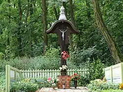 - Kapliczka przydrożna z figurą Najświętszego Serca Jezusa sprzed II wojny światowej[10].