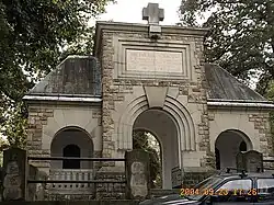 Na cmentarzu znajduje się postument według projektu Gustawa Ludwiga