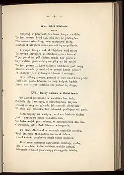 Mickiewicz, Adam (1798-1855): Poezye Adama Mickiewicza. T. 1.. Kraków: Księgarnia G. Gebethnera, 1899 (Kraków: W. L. Anczyc). [dostęp 2021-01-02]. - 1 2 Makowski 1969 ↓, s. 140-141.