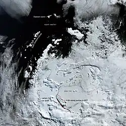 - ↑ Shuman, Christopher: Tracking an Antarctic Iceberg’s Epic Journey. [w:] earthobservatory.nasa.gov [on-line]. [dostęp 2021-12-30]. (ang.).