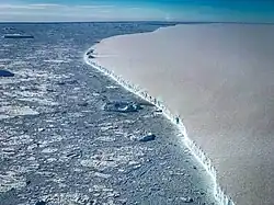 - 1 2 Antarctic Ice Shelf Sheds Massive Iceberg. [w:] Earth Observatory [on-line]. NASA, 2017-07-13. [dostęp 2020-12-09].